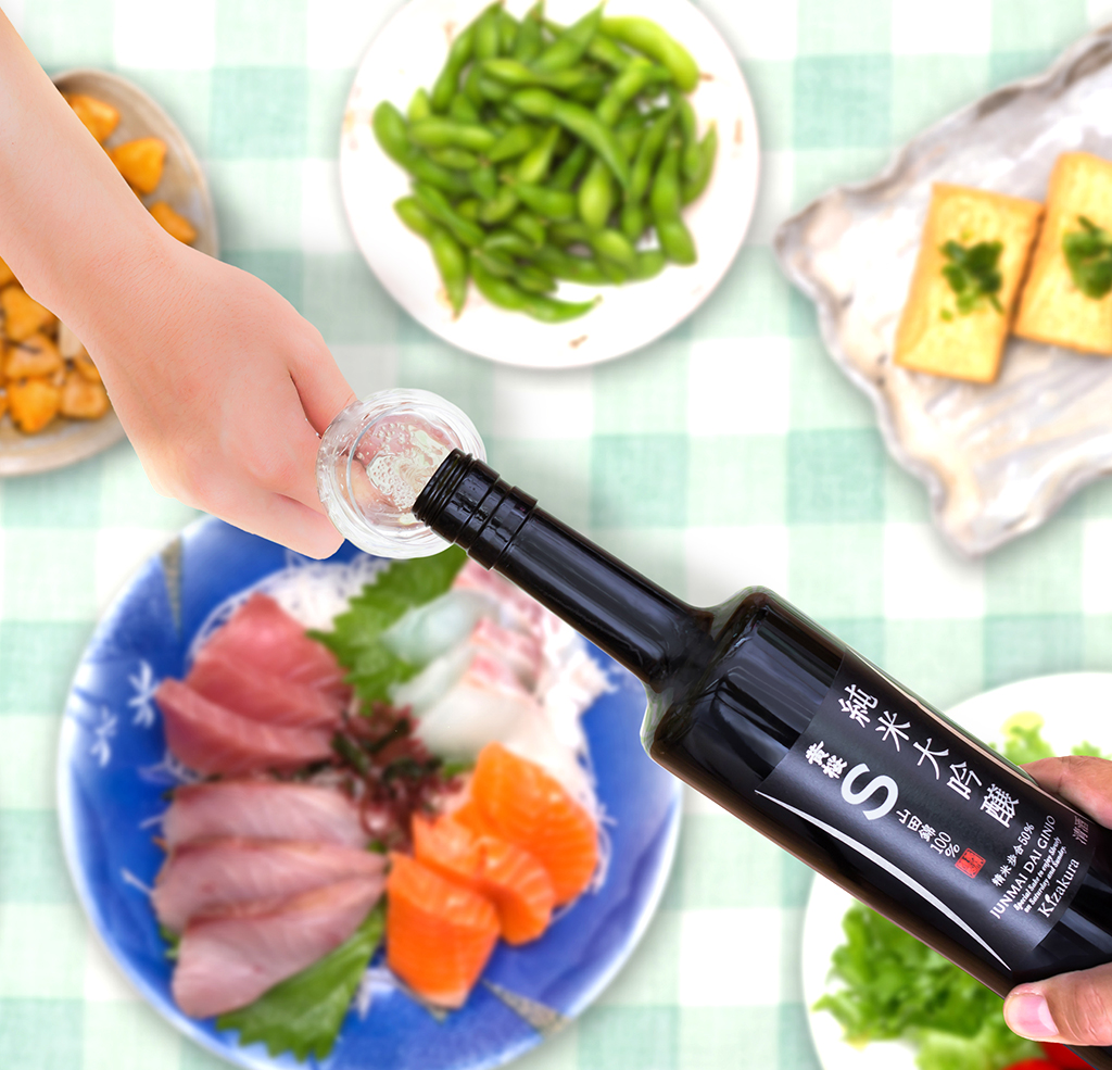 The flavor of "S" Junmai Daiginjo is pure and aromatic. So it matches well with simple dishes which bring out the original taste or flavor.