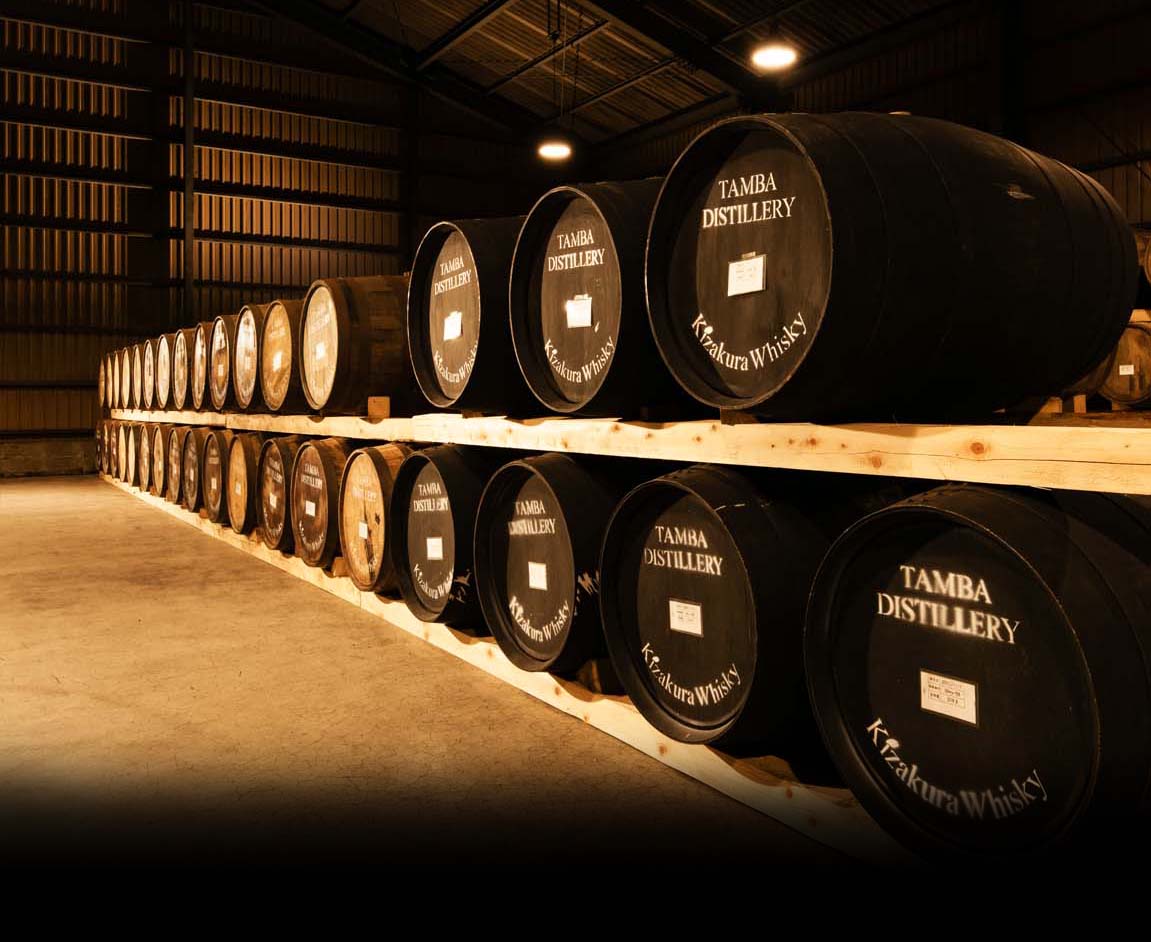 Every malt has its own unique character. Single malt whisky uses only the malt from a single distillery. The local climate, quality of the ingredients, time, and the people who craft the whisky have a profound influence on the taste, aroma, and aftertaste. Recognizing that the philosophies of whisky making and sake brewing have much in common, Kizakura began making whisky in Tamba, focusing on single malt.